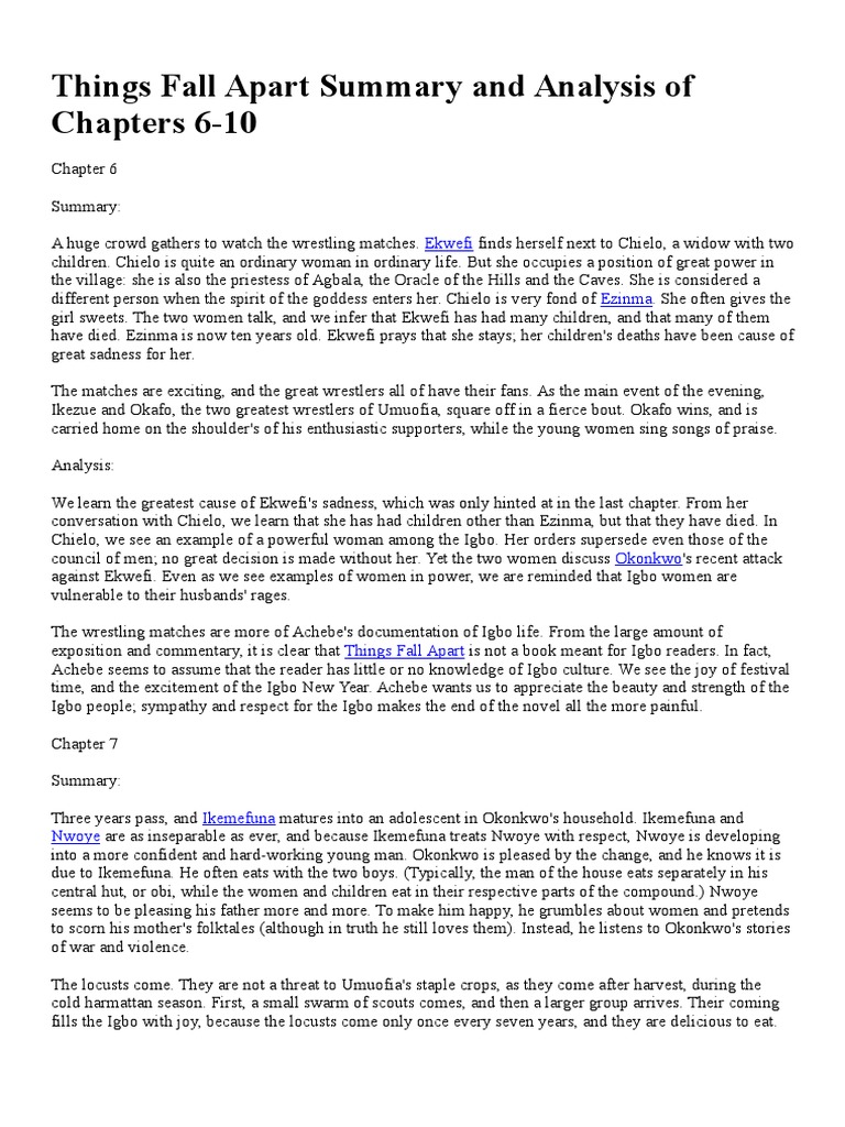 Things Fall Apart Summary And Analysis Of Chapters 6 Pdf Negotiation Igbo People